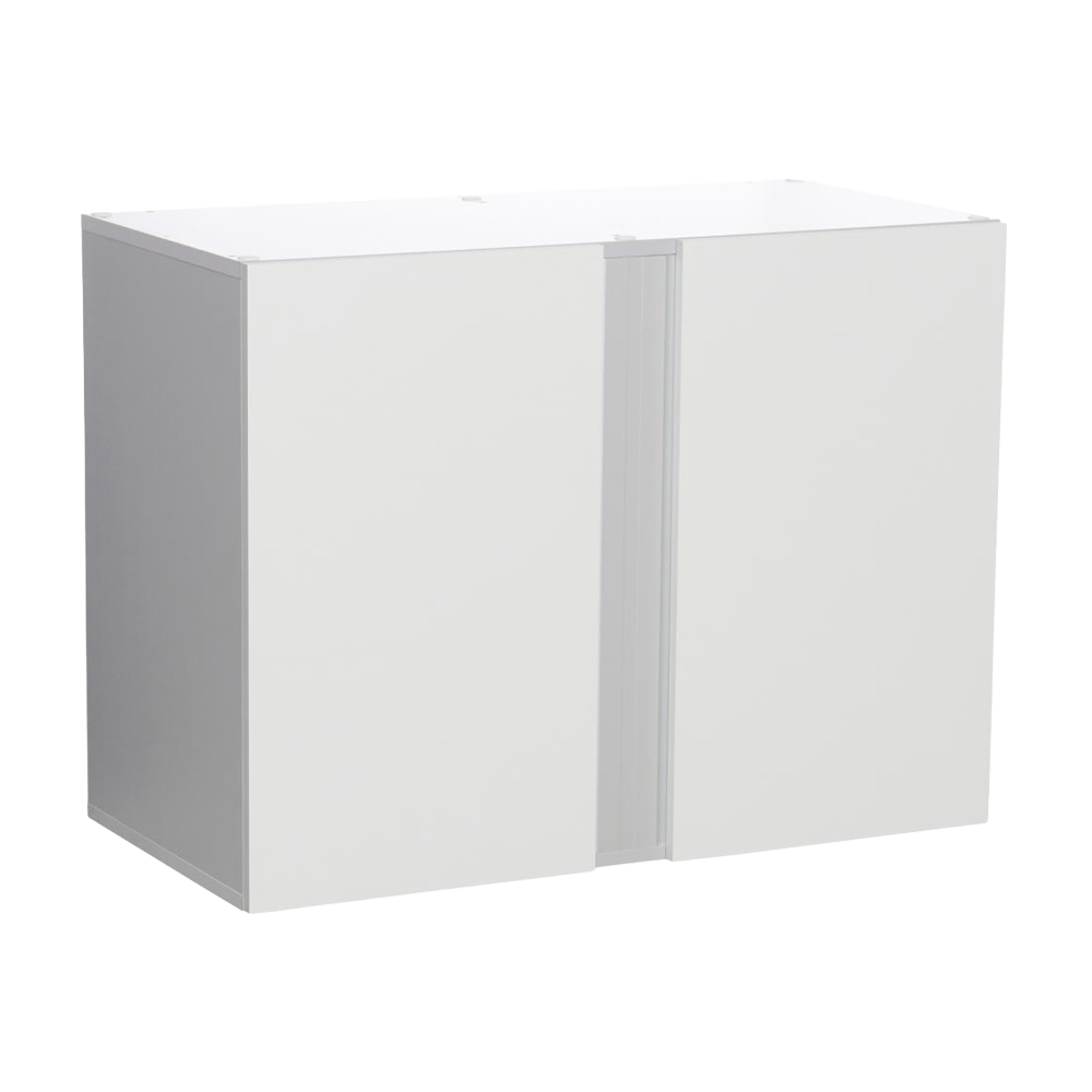 - Egenskaper: Möbeln är tillverkad i solid vit melaminplatta där bärande delar är 19 mm tjocka och luckor samt hyllor 16 mm. Samtliga kanter, även de som inte syns, är försedda med pålimmade kantband vilket ger extra skydd mot vatten och fukt. På baksidan finns två stora genomföringshål för slangar och kablar samt ett hål i mellanväggen som gör det enkelt att dra teknik mellan skåpets olika sektioner. Levereras med två eller tre flyttbara hyllor som kan placeras efter behov.