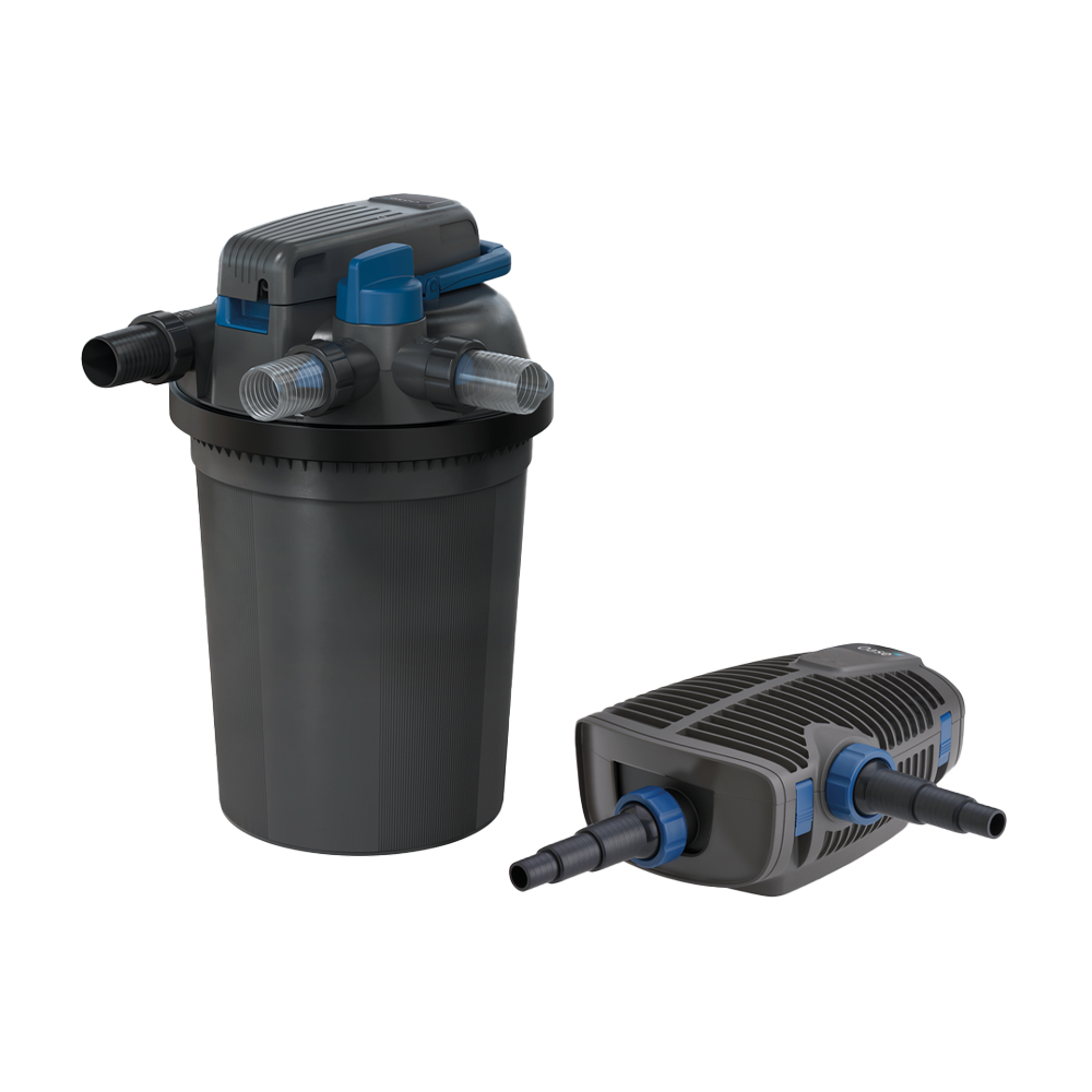 Detta kompletta filter- och pumpset kombinerar det kraftfulla tryckfiltret FiltoClear 19000 med den energieffektiva AquaMax Eco Premium 13000-pumpen, perfekt för större dammar, även med koi. Filtrets reglage sitter praktiskt i locket och möjliggör nedgrävning för en diskret installation. Med en stark 42 W UV-C-lampa, finstrukturerade filtersvampar och OASEs bypass-teknik uppnås en effektiv och igensättningsfri vattenrening. Filterrengöring sker enkelt med ett draghandtag och UV-C-lampan kan bytas under drift. Utrustad med UVC-rengöringsrotor för extra långvarig effekt.