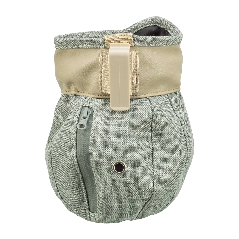 - Egenskaper: Integrerad bajspåsehållare gör att du har både godis och påsar samlade på ett ställe. Den stabila öppningen håller formen och gör det enkelt att snabbt nå belöningen, medan locket skyddar innehållet mot regn och smuts. Reflexdetaljer ger ökad synlighet i mörker och fästclip gör att väskan sitter säkert på bälte eller ficka. Levereras i blandade färger.