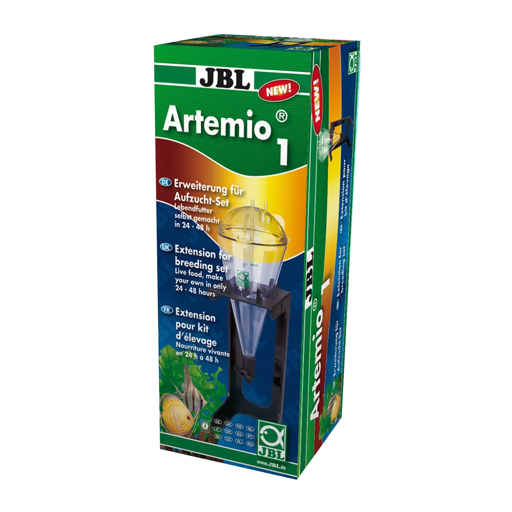 JBL Artemio 1 är en komplett kläckningsbehållare som används för att utöka JBL ArtemioSet. Den gör det möjligt att kläcka egna artemianauplier på 24–48 timmar – perfekt som levande foder för unga och känsliga fiskar. Tack vare det smarta bajonettfästet kan flera behållare kopplas ihop för kontinuerlig kläckning och en jämn tillgång på färska nauplier.