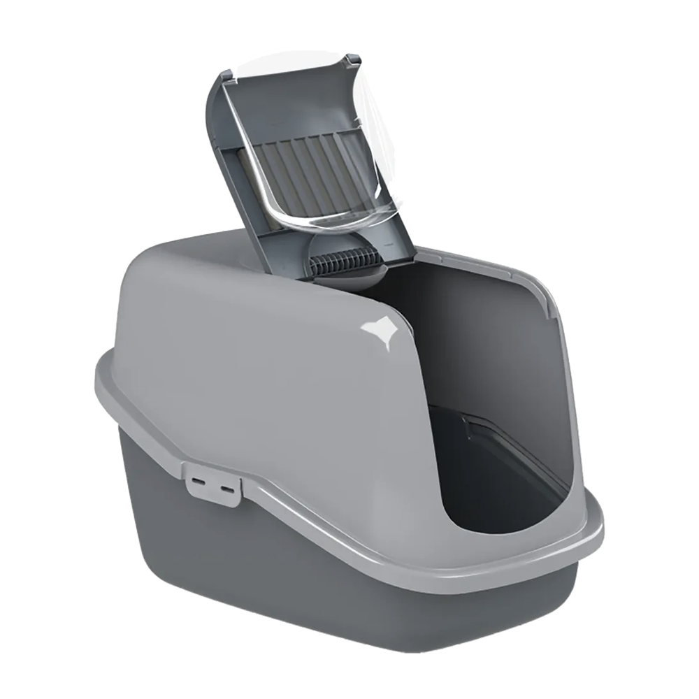 - Egenskaper: Tvådelad konstruktion med galler som låter urinen rinna ner i den undre lådan medan den övre håller sig torr och ren. Tillverkad i slitstarkt material med modern design i antracit och grått.
