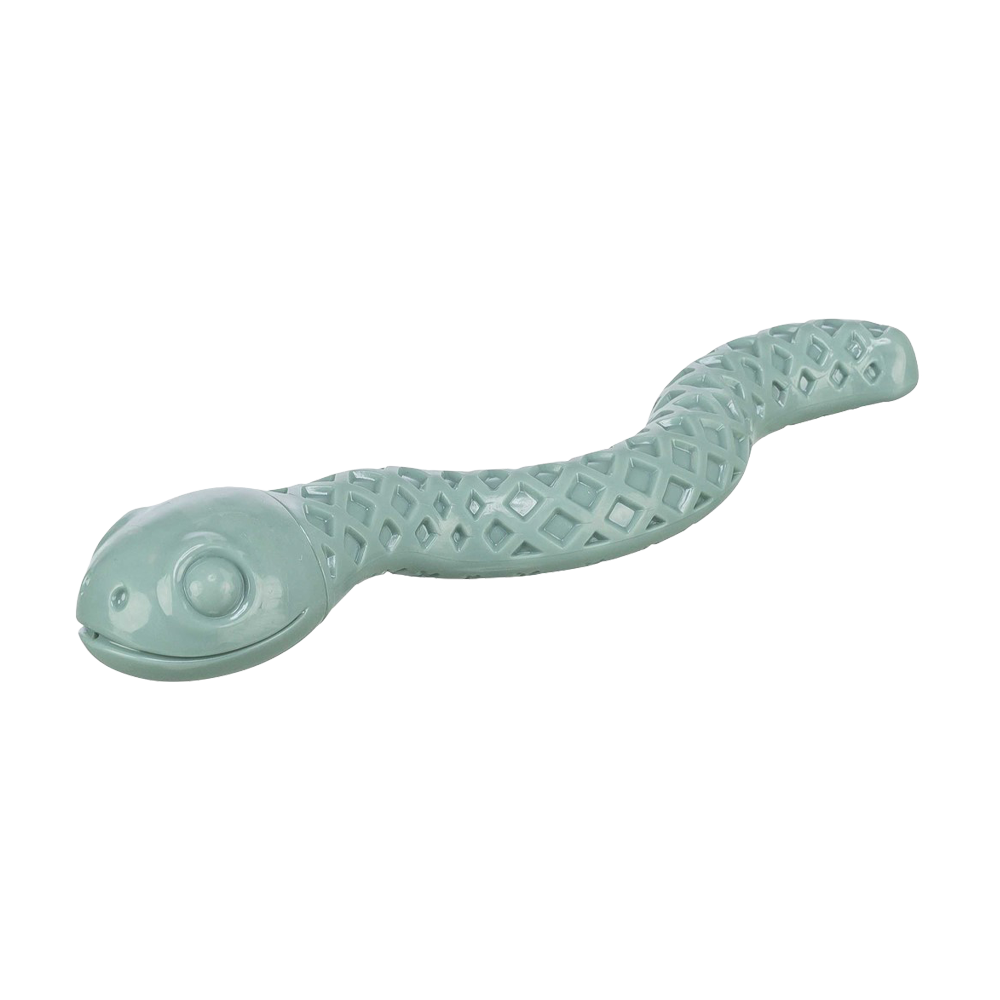 Snack-ormen är en lekfull och smart belöningsleksak som gör vardagen roligare för din hund. Den charmiga ormformen väcker nyfikenhet och lekglädje, samtidigt som spåret undertill enkelt kan fyllas med paté eller runda godbitar. Perfekt när du vill belöna, skapa fokus eller ge din hund en stunds extra mental aktivering. När hunden arbetar för att få ut godsakerna stimuleras både kropp och knopp på ett naturligt sätt.