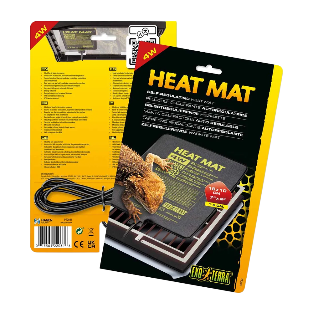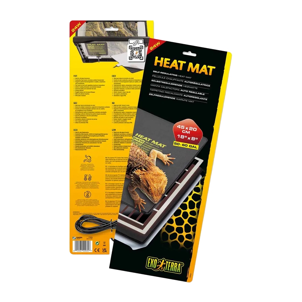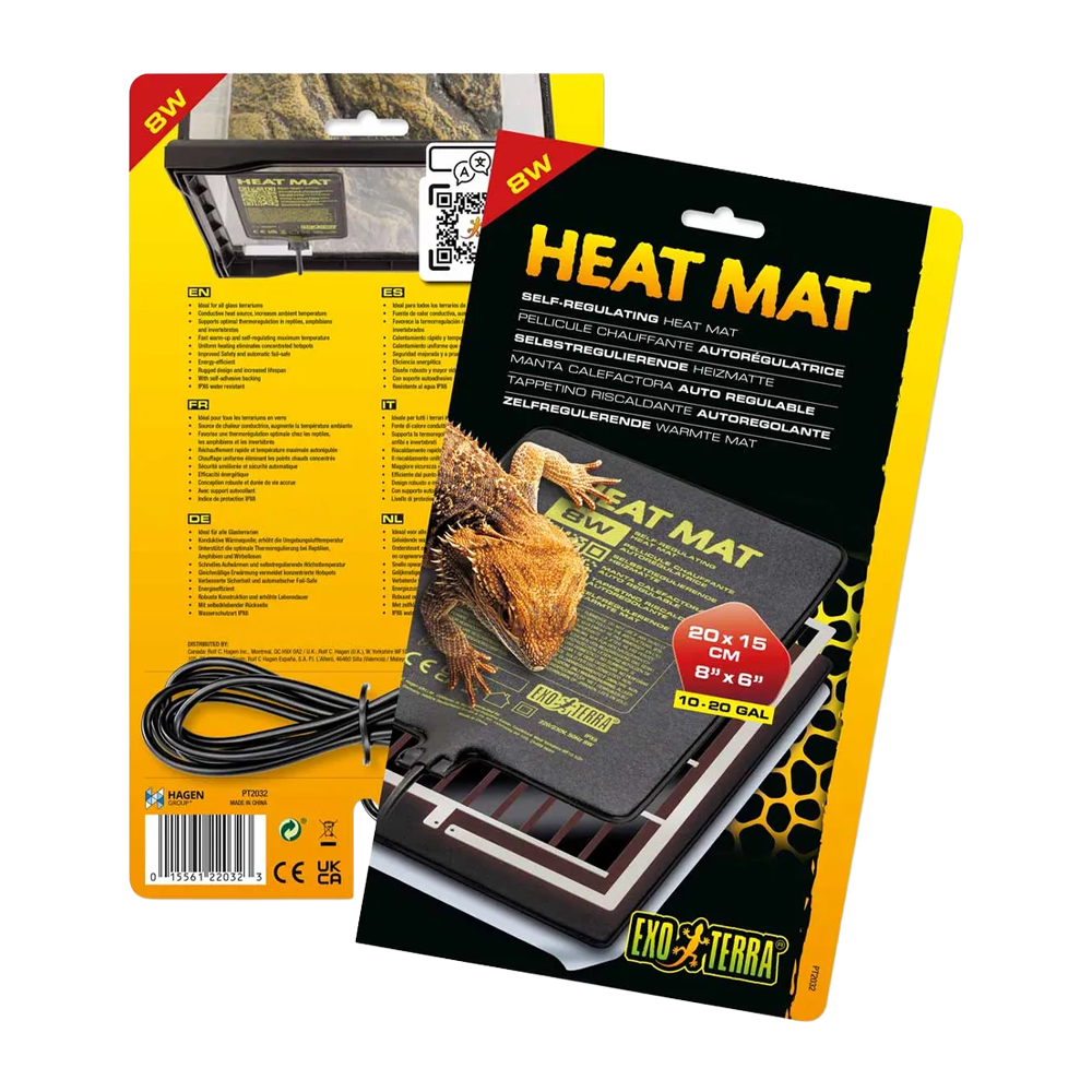 Exoterra Värmematta Self-regulated är en självreglerande värmematta som ger en jämn och säker värmekälla för reptiler, groddjur och ryggradslösa djur i glasterrarier. Den efterliknar naturligt soluppvärmda ytor och skapar en stabil temperaturgradient som gör det lättare för djuren att reglera sin kroppstemperatur.